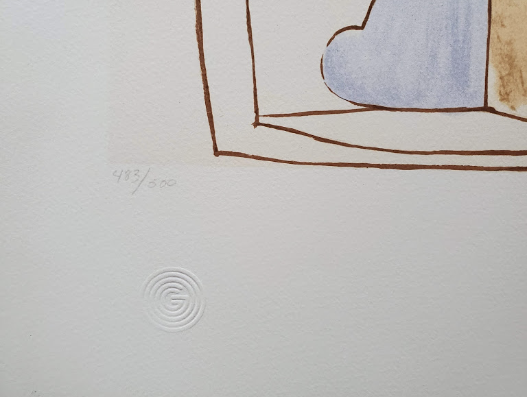 To ensure authenticity, each of the 500 limited edition Lithographs is numbered and signed by Marina Picasso, and is stamped with the embossed seal of the estate and the chromist.
