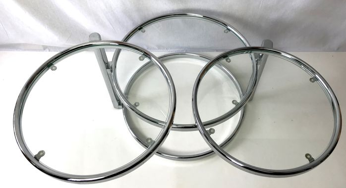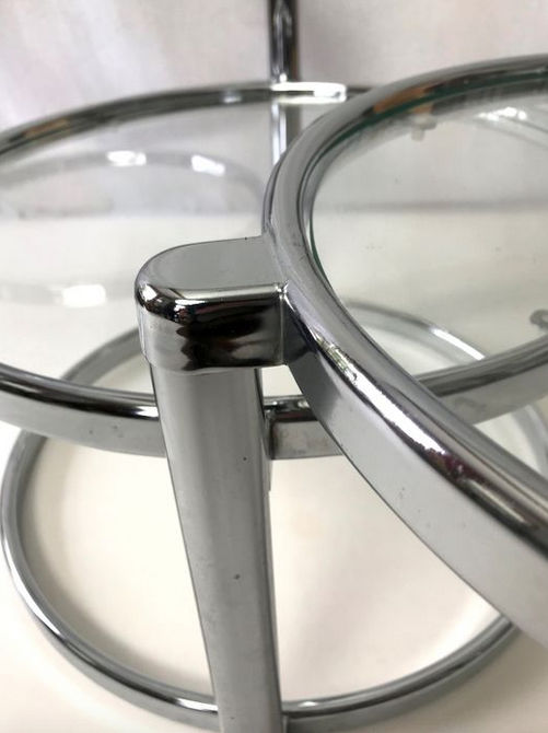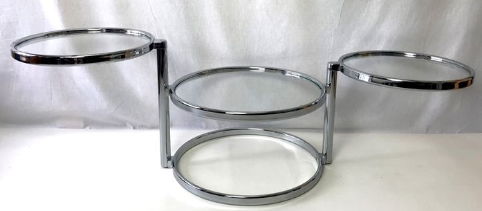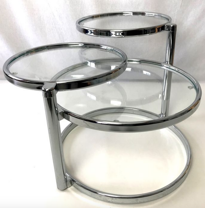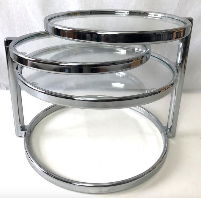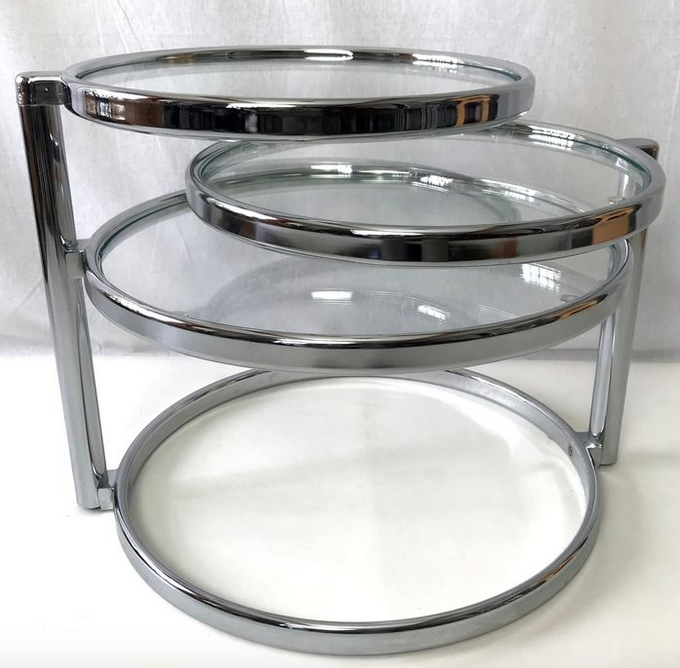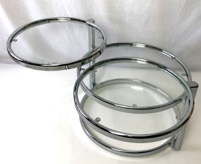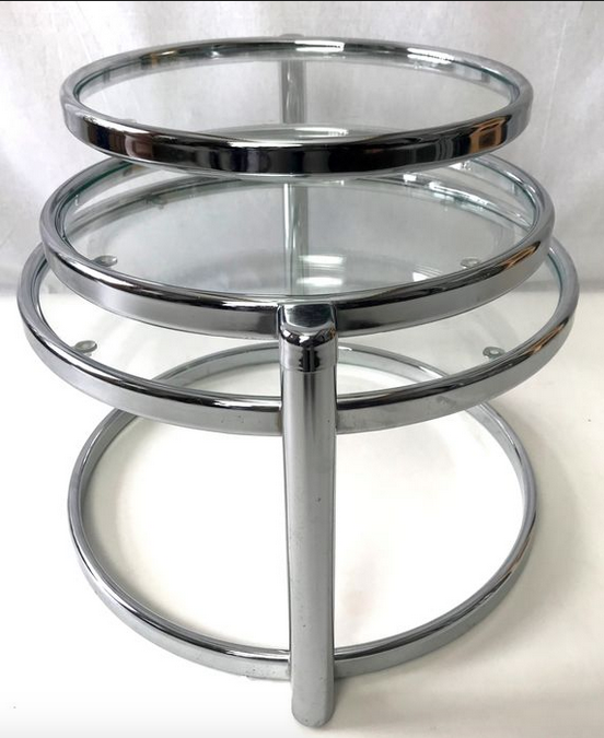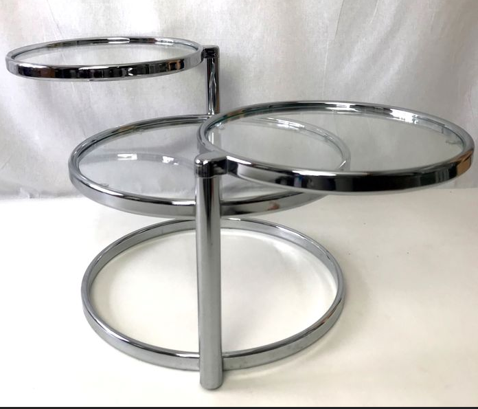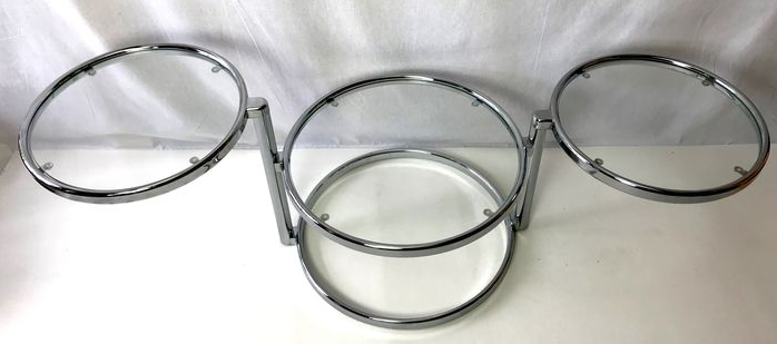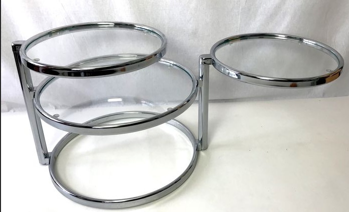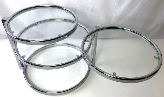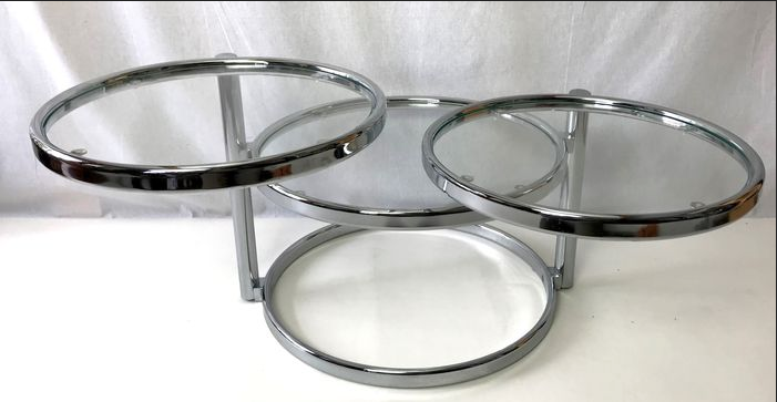 This table has three tabletops, two of which can be turned in various directions. This way you can extend the table tops and turn them back when necessary.