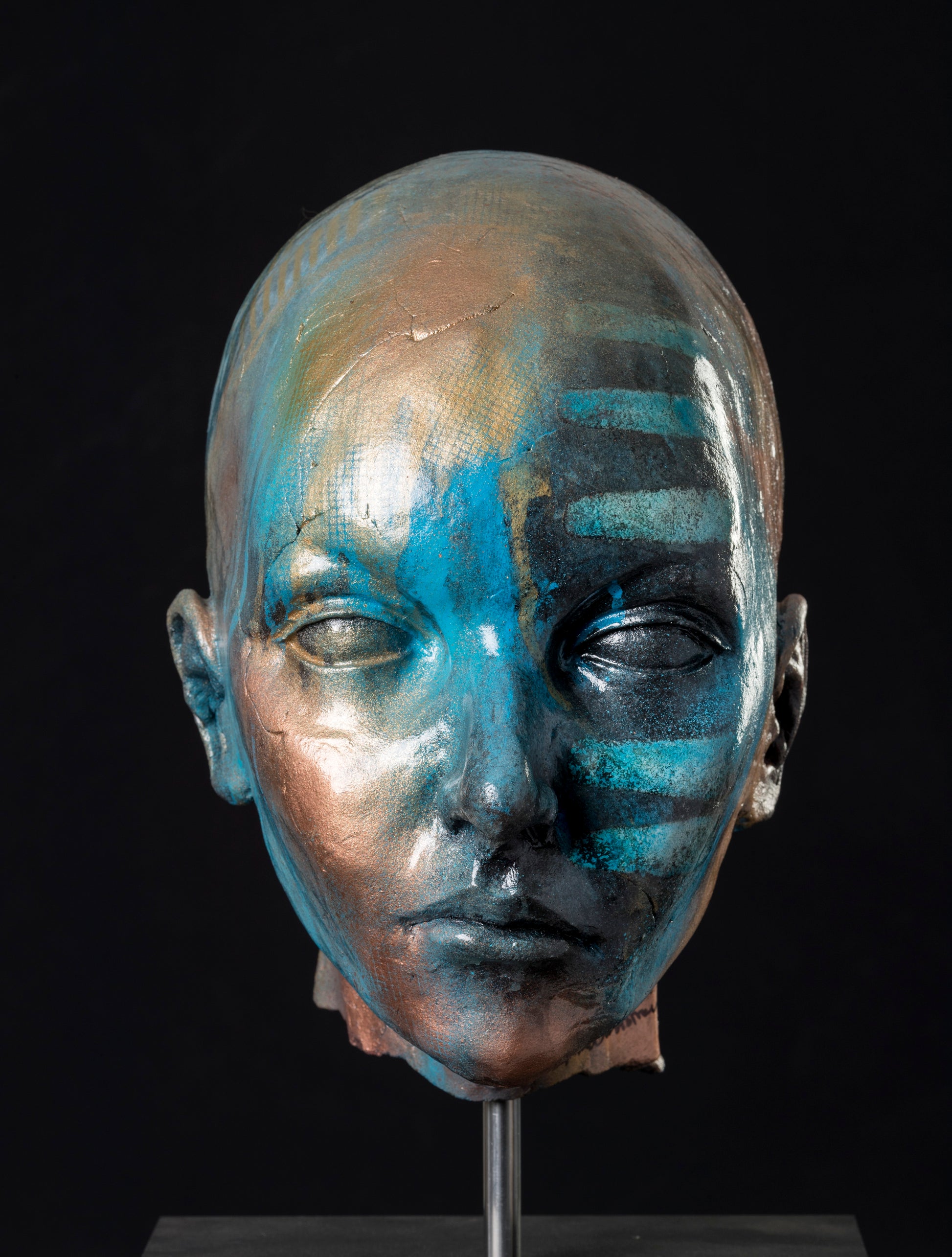 His technique has evolved a lot, especially since he discovered "raku", an enameling technique which emerged during the 16th century in Japan, where one uses strong stoneware clay as the pieces need to resist strong temperature differences. This is how his faces and ceramic heads are an end result of a combination of clay techniques through raku, and colorful glaze. Eyes closed with a peaceful expression, Sandström's faces inspire tranquility and well-being.